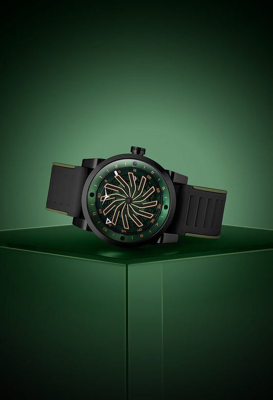 The distinctive color combination of a matte black case with a green bezel stands as a testament to truly unique watches.