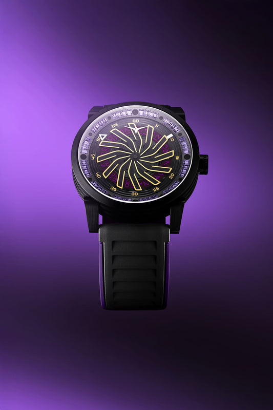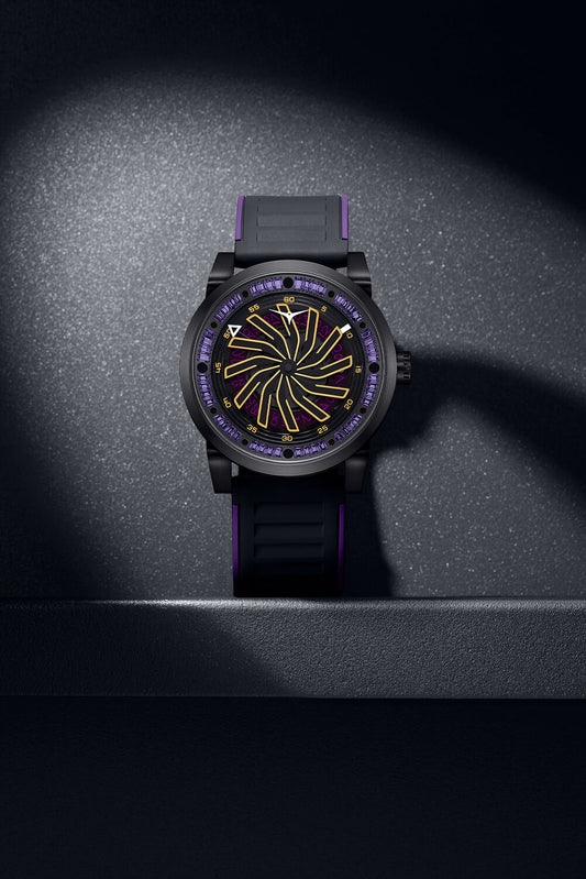 Characterized as a bold and highly desirable color combination with red corsa accents featured on the 1-second-spin turbine dial.