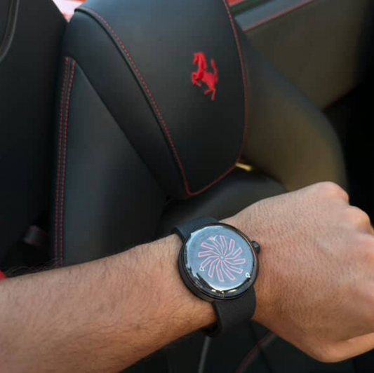 The unique & refined Blade timepiece runs on automatic movement with 42 hours of power reserve, setting the unique 1-second-spin turbine dial in motion. Custom movement rotor is showcased through the exhibition case back.