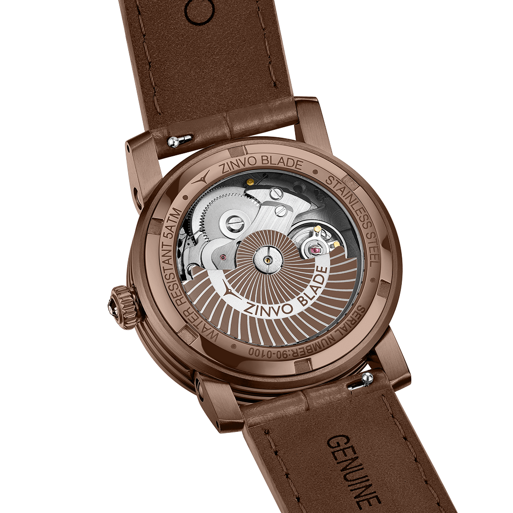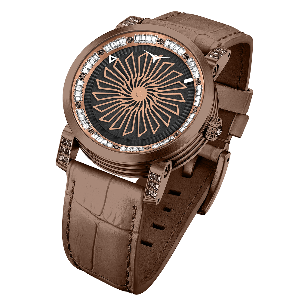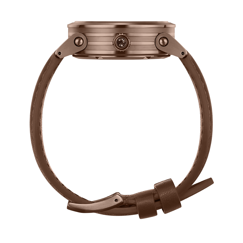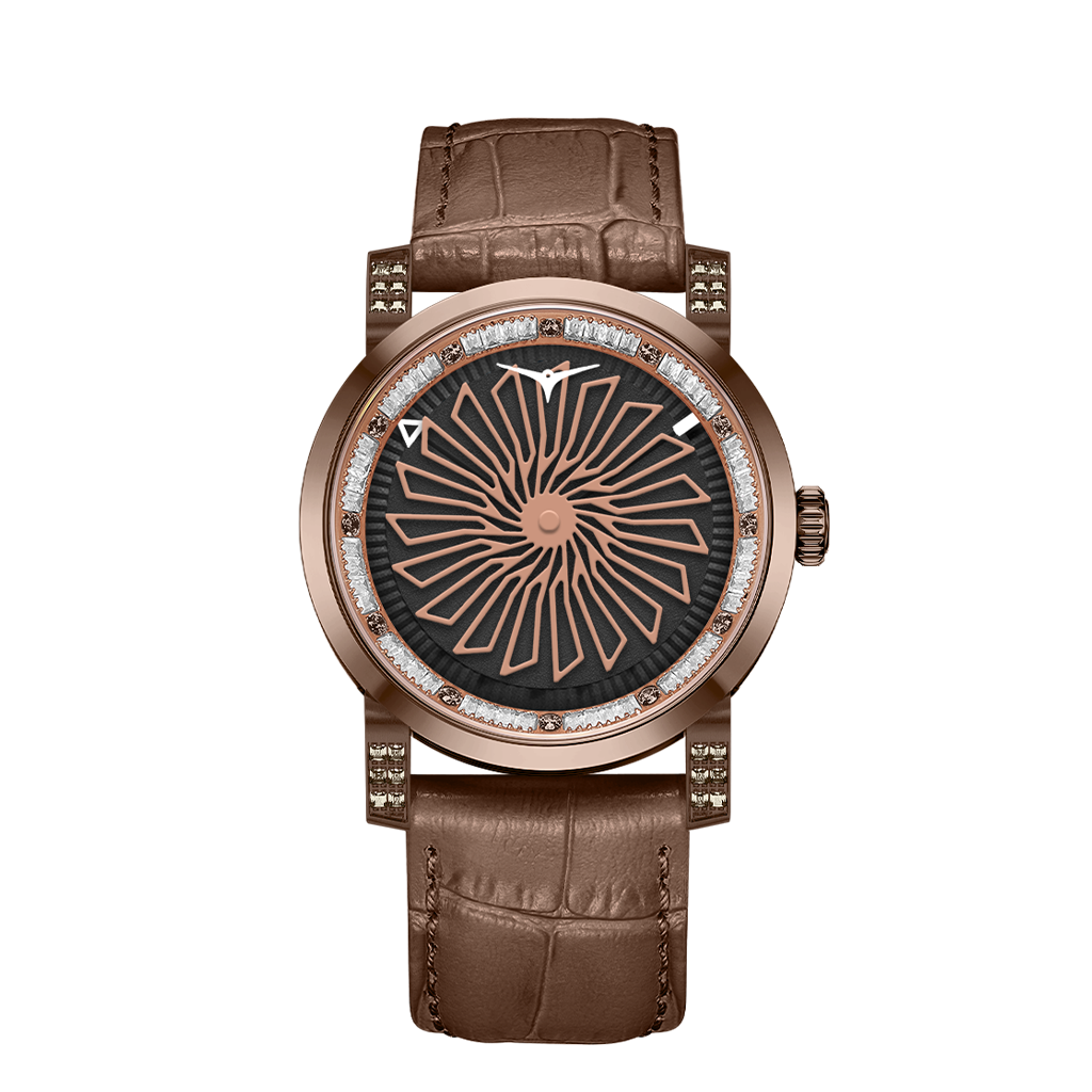 The Blade Choco Gem wraps refined craftsmanship in irresistible allure. Its rich chocolate-brown case and dial are kissed with rose-gold accents, spinning in a mesmerizing motif that dazzles at first glance. Radiant gem markers bring a flash of brilliance, while the supple brown leather strap whispers effortless elegance—whether at brunch, boardroom, or gala.